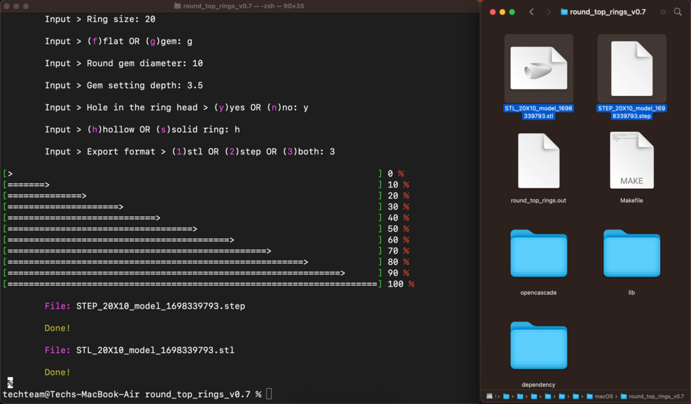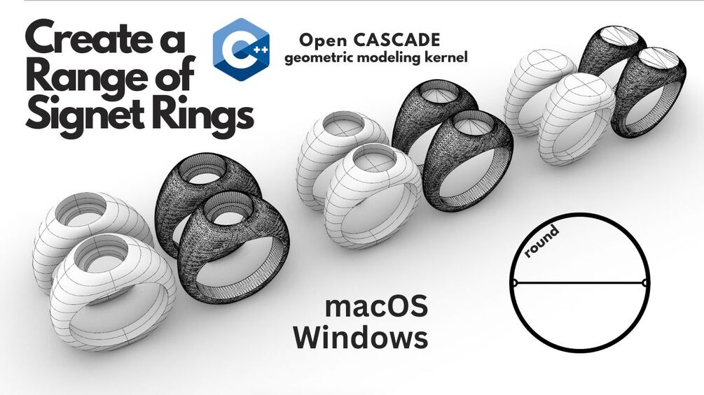 Round flat-top/Round cabochon 3D rings making program with command-line interface based on Open CASCADE Technology. The program generates the fully printable STL files and editable STEP files.